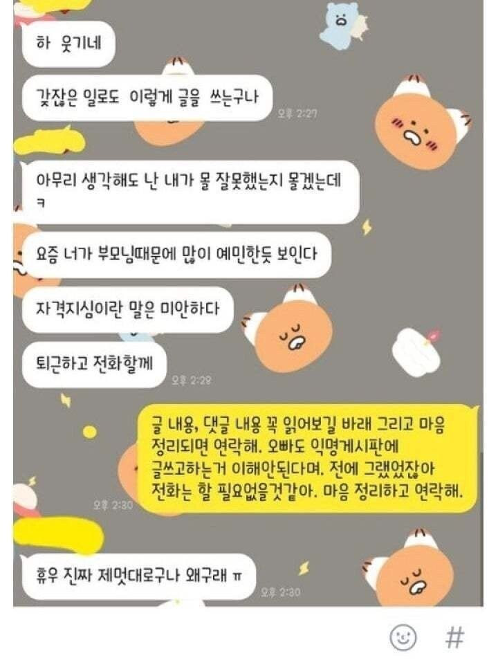 2. 여자부모님도 자영업자라 민감하게 반응하니 여자보고 자격지심이라고 함