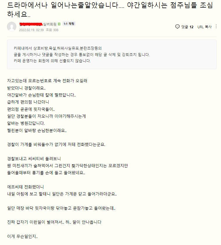 오늘자 편의점 야간 알바 사망사고 ㄷㄷ