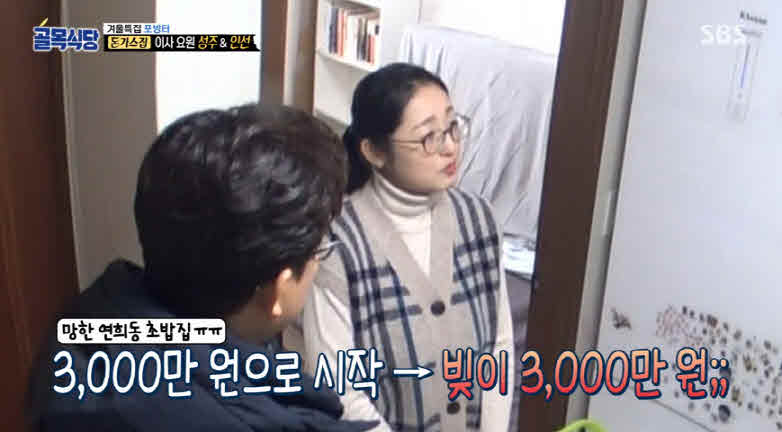 사장님은 "만삭에 이사온 집"이라며 신혼 때 초밥집을 하다 망한 이후 어쩔수 없이 이 집에서 계속 살게된 사연을 털어놨다. 이어 "사람들이 내가 돈 많이 벌어 잘 사는 줄 알 수도 있겠구나 생각했다"며 "하지만 대기실과 가게 월세에 알바생 두명의 인건비과 재료비, 공과금과 전 가게 빚을 갚으면 남는 것이 없다"밝혔다.