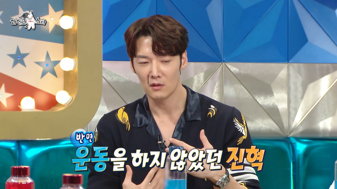 당시 운동을 안해서 탈의를 못하고 민소매를 입음. 그게 너무 부끄러워서 운동 ㅈㄴ했다고