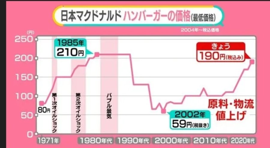일본 맥도날드 햄버거 단품 가격 변화