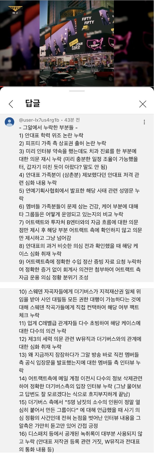 반응 ㅆ창난 '그것이 알고싶다' 피프티편