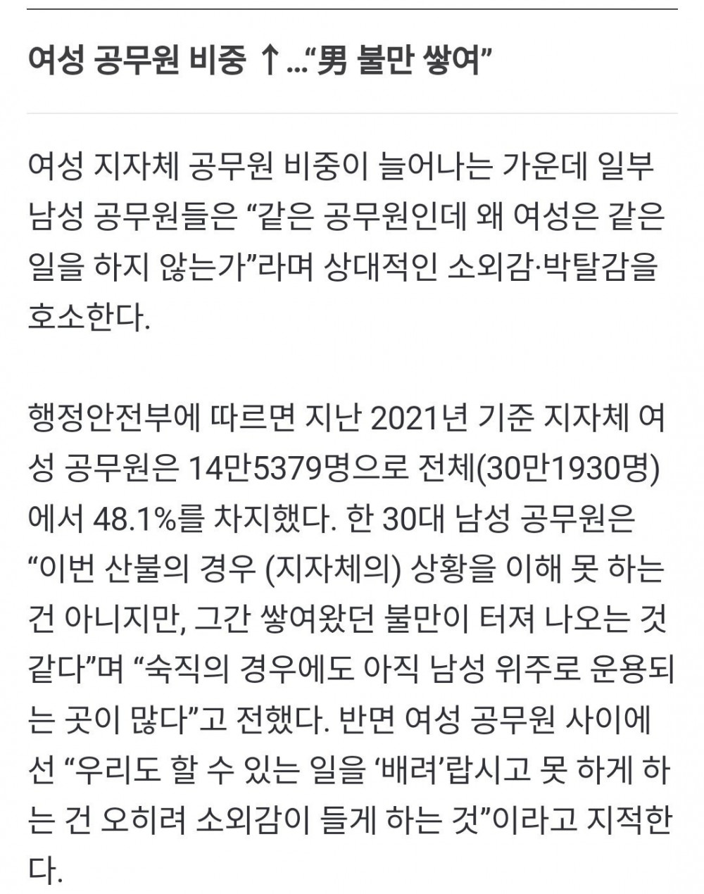 女공무원 “배려랍시고 못 하게 하는 건 오히려 소외감”