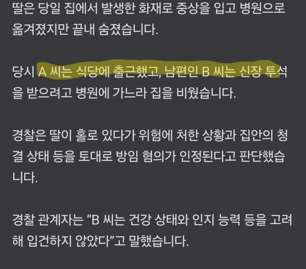 아이 혼자 화재로 사망.. 엄마 검찰 송치