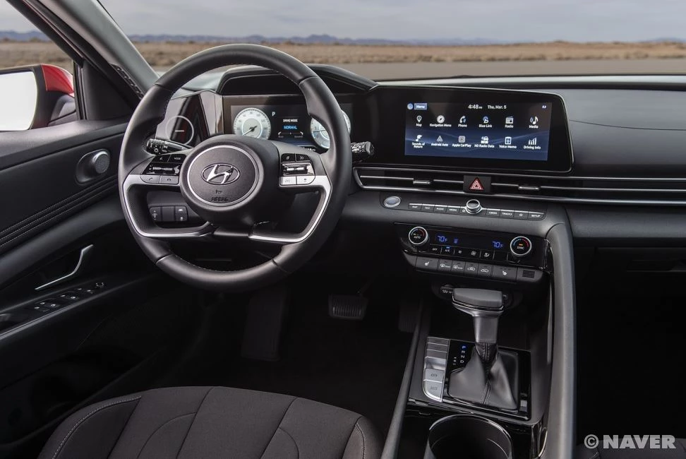 신형 아반떼 실내는 '그랜저 실내'가 떠오를 정도로 세련되게 디자인됐다.