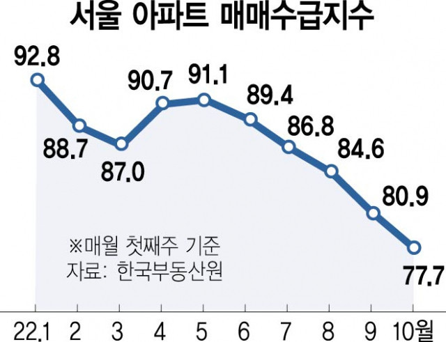 땅이 어딘지 모르고 쳐박는 매매수급지수 (11월25일 기준67.9로 10여년만의 최저치)
