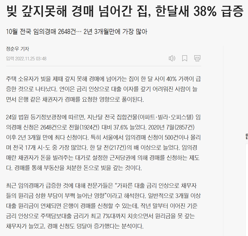 한달만에 경매 넘어간 집 약40% 급증