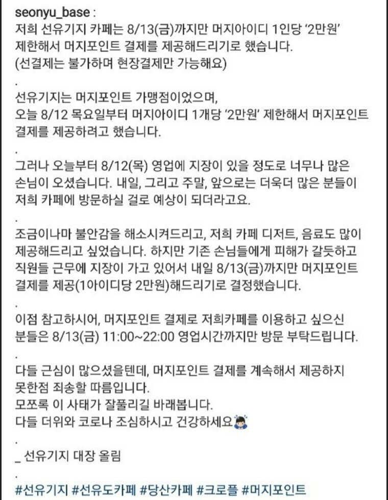 머지포인트 받겠다고 선언한 카페