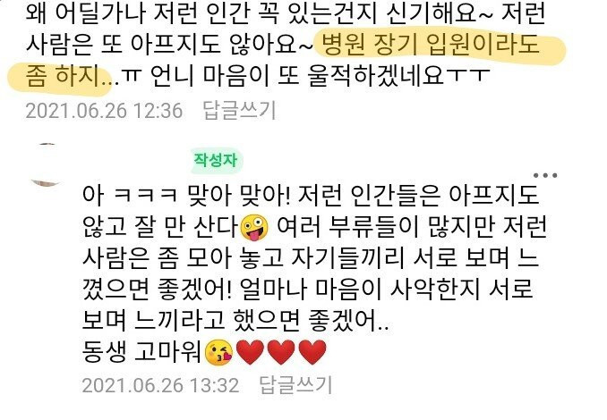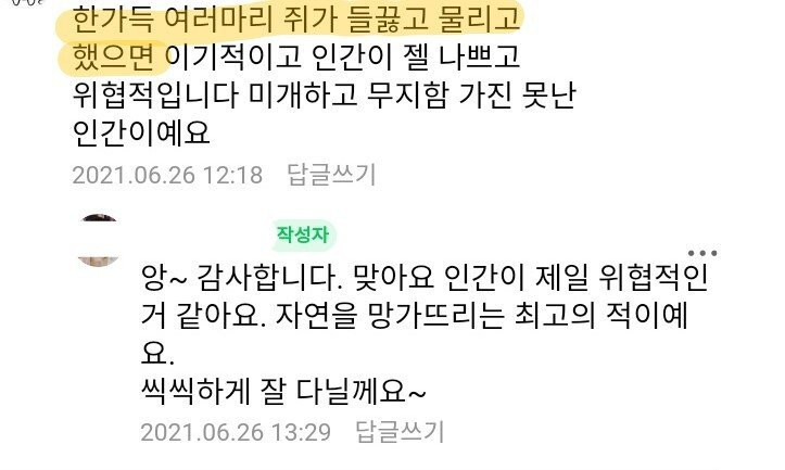 - 댓글들도 한마음으로 쥐 저주, 바퀴 저주, 병원 장기 입원 저주(;;;;;;;;)를 내려줌