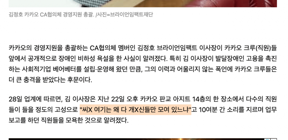 카카오 임원 "ㅅㅂ 여기는 왜 다 개ㅂㅅ들만 모여 있느냐??"