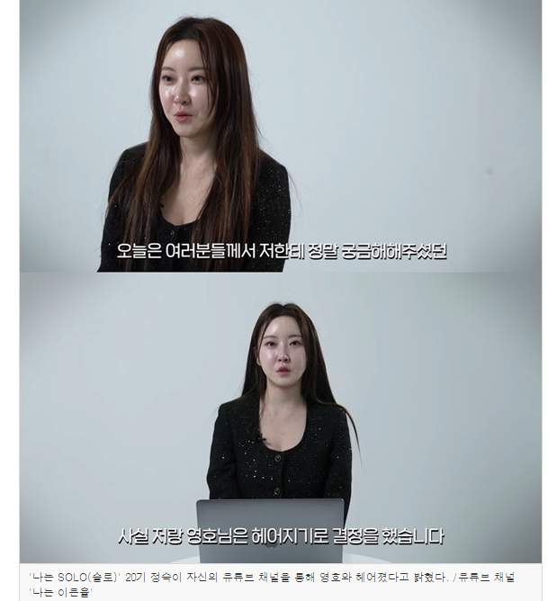 정숙은 "결별엔 크게 두 가지 이유가 있다. 첫 번째는 방송에 나갔던 (시무 35조) 내용 중에 공개가 안 된 부분들이 많았다"며 "제가 받아들이기 힘든 부분이 있었는데 영호님에게 지키겠다고 약속했기 때문에 그 내용을 지키려고 노력했고 영호님도 잘 지켜주고 있다고 말할 정도로 저는 관계에 대해서 최선을 다 했다"고 전했다.